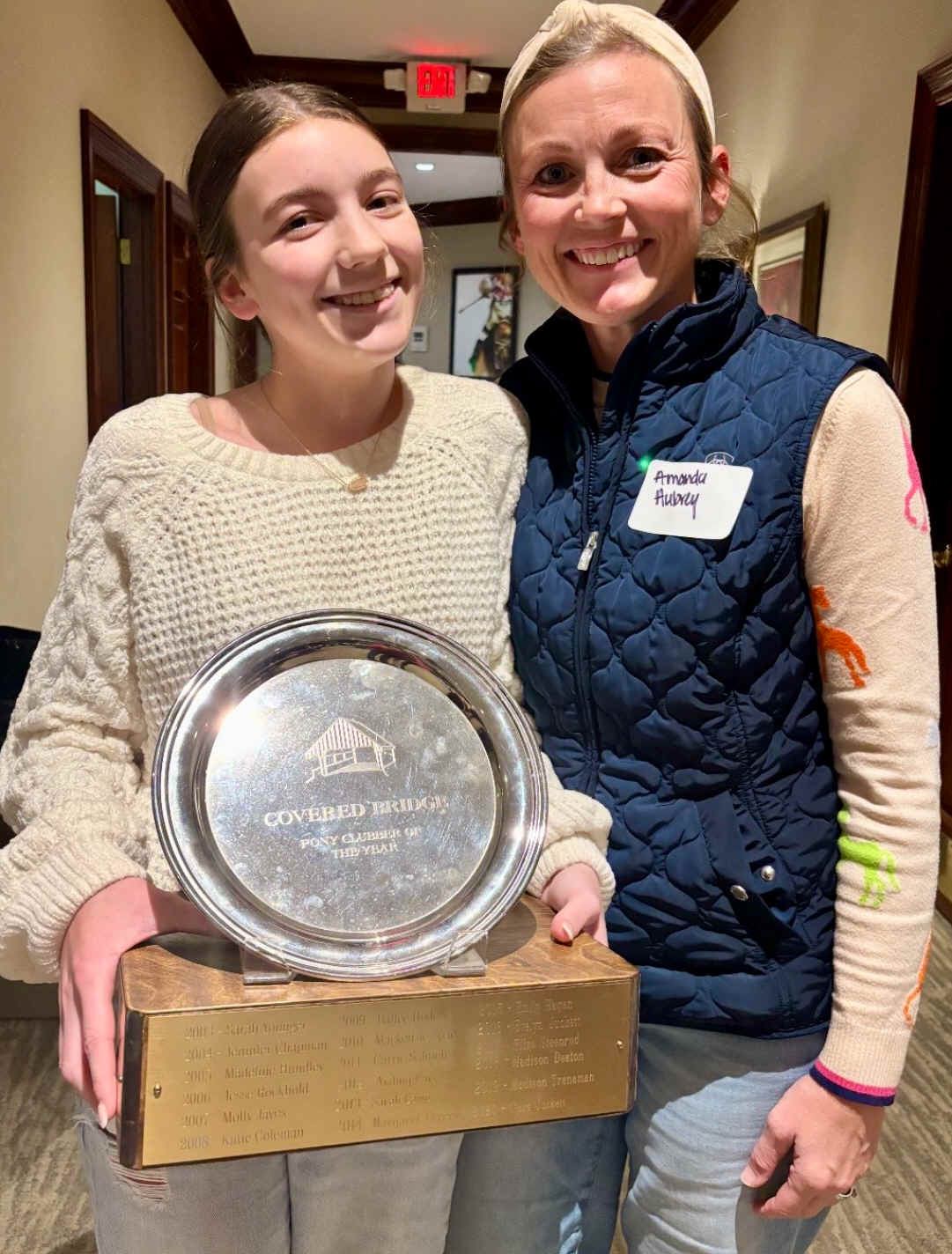 2026 CBPC CT trophy winners: The Oteka Brab Starter Trophy - Kennedy Gilbert Oteka owned the Prospect Horse & Rider store in Prospect for many years. When it closed, she donated the remainder of her inventory to CB resulting in a substantial rainy-day account. Sadly, Oteka passed in 2022. The "Rosie" Beg Nov Trophy - Madelyn Selking Quiz Kids know Rosie the Wonder Pony from her pictures on my mantle which are used to illustrate her breed characteristics along with a few stories about how she was such a trustworthy caretaker of my children. The Joy Bennett Novice Trophy - Katherine Naselsker Joy founded Covered Bridge in 1972 with Susan (Lewis Harris) Perellis as an original member. Please click Joy Post Bennett link for her story. The Katie Hagan Training Trophy - no training division in 2026 Katie joined CBPC with her daughter Emily in 2005 then stepped up to the plate to be our District Commissioner from 2008-2010, then served as a Jt-DC until 2014. She organized camps & pony club meetings and was always busy helping at our CT and Mega Rally. This trophy was named in her honor after her untimely death in 2017. Annual Awards and Championships: